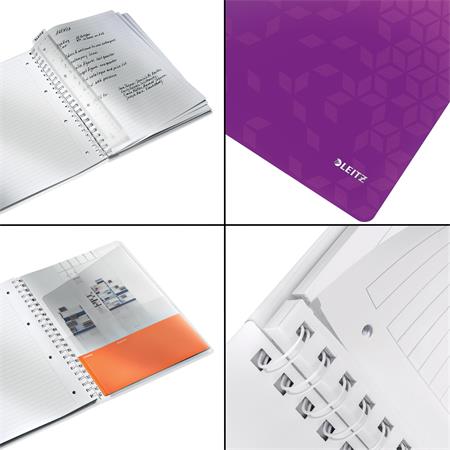 KezdőlapIrodaszerekIrodai papíráruFüzetek, gyűrűskönyvbetétekSpirálfüzet, A4, vonalas, 80 lap, LEITZ "Wow", lila