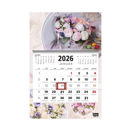 Naptár, speditőr, három hónapos, egy tömbös, TOPTIMER, "Virágok"