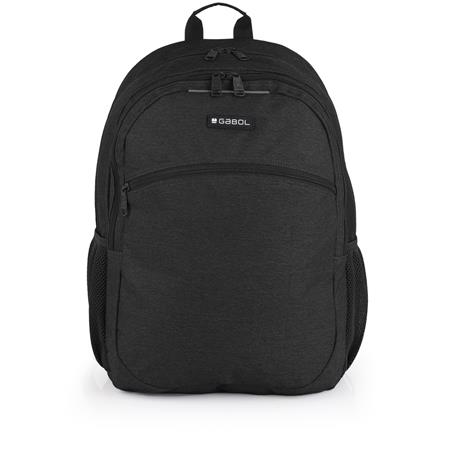 Hátizsák, iskolatáska, notebook tartóval, cipzáras, GABOL "Wolf", fekete
